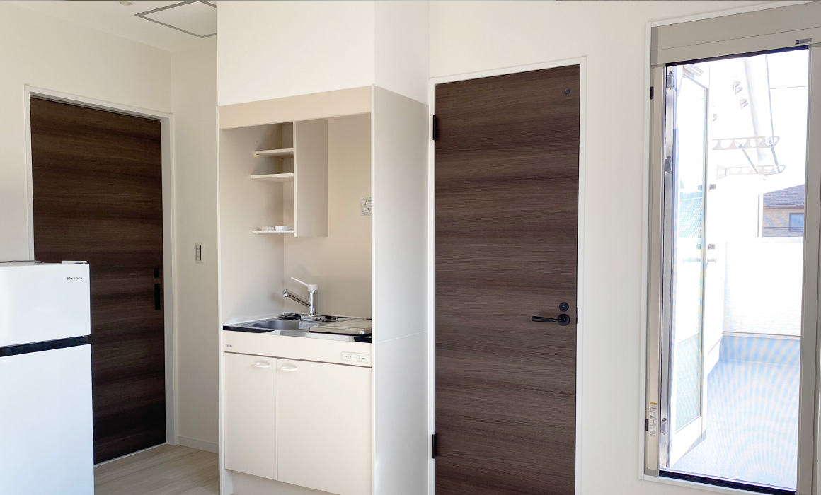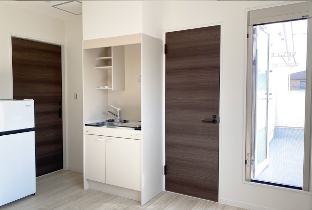 居室内にミニキッチン・トイレ・お風呂・洗濯機が完備され、ほぼ自立した生活をしていただけます。